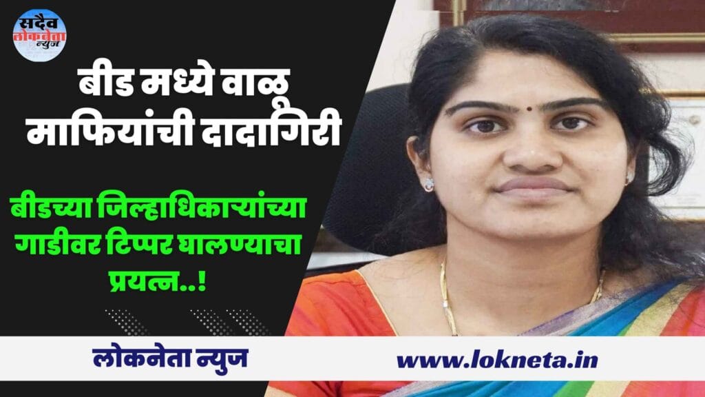 बीड :- एकीकडे सरकार राज्यात नवीन वाळू धोरण राबवण्याच्या गप्पा मारत असताना दुसरीकडे मात्र वाळू माफियांची दादागिरी वाढल्याची परिस्थिती पाहायला मिळत आहे. धक्कादायक म्हणजे वाळू माफियांची हिंमत एवढी वाढली की, बीडमध्ये थेट जिल्हाधिकाऱ्यांच्या गाडीवर टिप्पर घालण्याचा प्रयत्न करण्यात आला आहे. छत्रपती संभाजीनगरहून बीडला येताना एका वाळू वाहतूक करणाऱ्या टिप्परने चक्क बीडच्या जिल्हाधिकारी